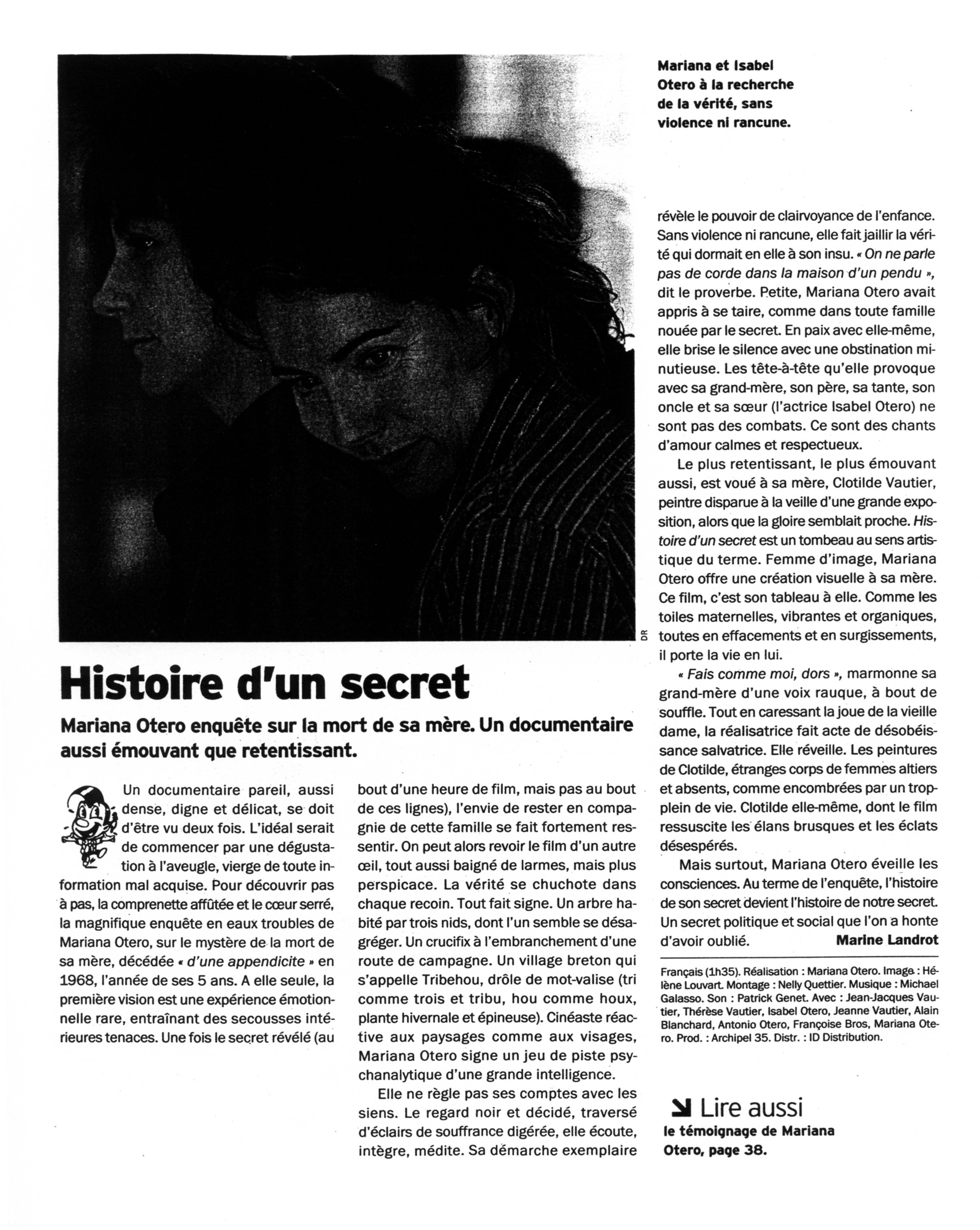 C’est pour transmettre cette histoire qu’en 2000, je me lance dans la réalisation d’ Histoire d’un secret, film où je veux raconter l’histoire de ma mère, sa trop brève existence, sa peinture, sa mort, le secret qui en a entouré les circonstances, et plus généralement l’avortement clandestin. Pour la première fois, j’allais être personnage et raconter une partie de mon histoire familiale, alors que jusque-là, depuis 15 ans, j’avais réalisé des films documentaires en cinéma direct, résolument “branchés” sur le présent.